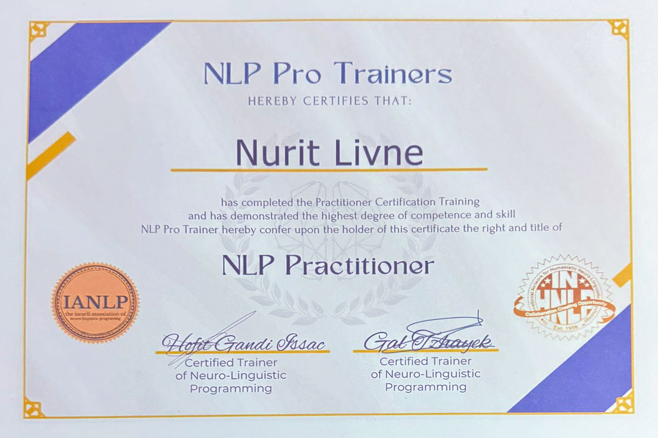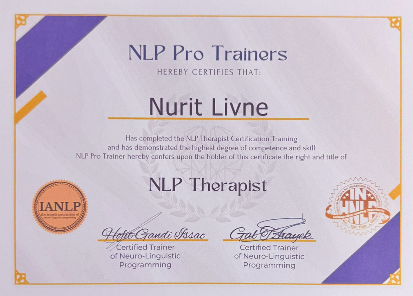 שיטת טיפול שממוקדת בשינוי דפוסי חשיבה והתנהגות. הטכניקות של NLP מאפשרות לחזק את הביטחון העצמי, ליצור בהירות, ולהגיע לתוצאות מהירות וממוקדות בחיים.